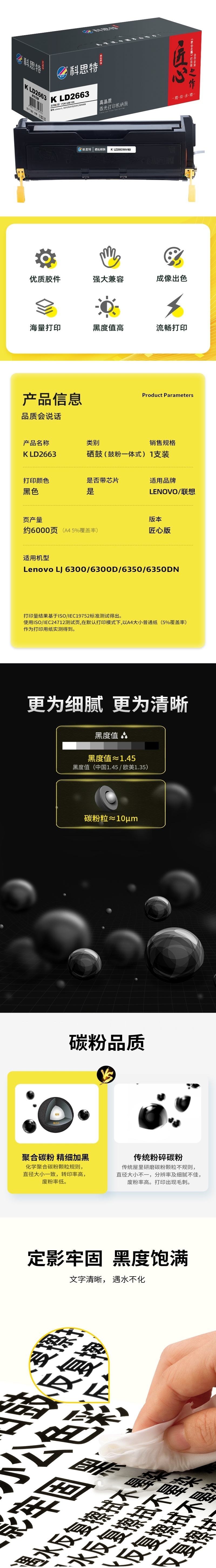 商品标题:科思特(KST)兼容K LD2663 匠心版硒鼓(鼓粉一体)黑色(适用联想Lenovo LJ 6300/6300D/6350/6350DN)打印页数:6000页(单位:支)