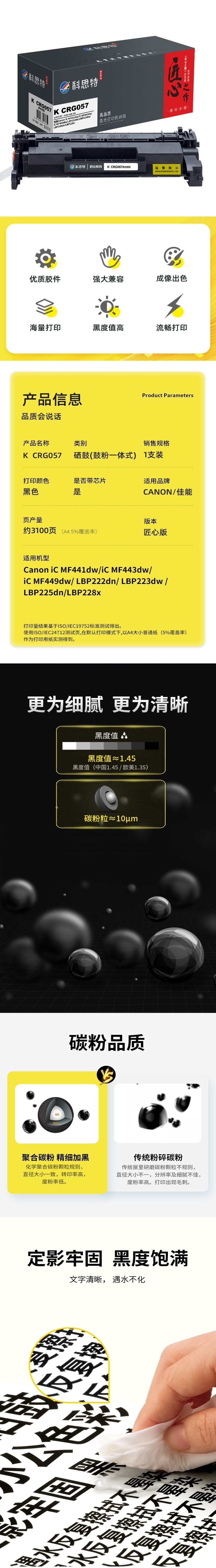 科思特(KST)兼容K CRG057 匠心版硒鼓(鼓粉一体)黑色(适用佳能Canon iC MF441dw/iC MF443dw/iC MF449dw/LBP222dn/LBP223dw/LBP225dn/LBP228x)打印页数:3100页(单位:支)