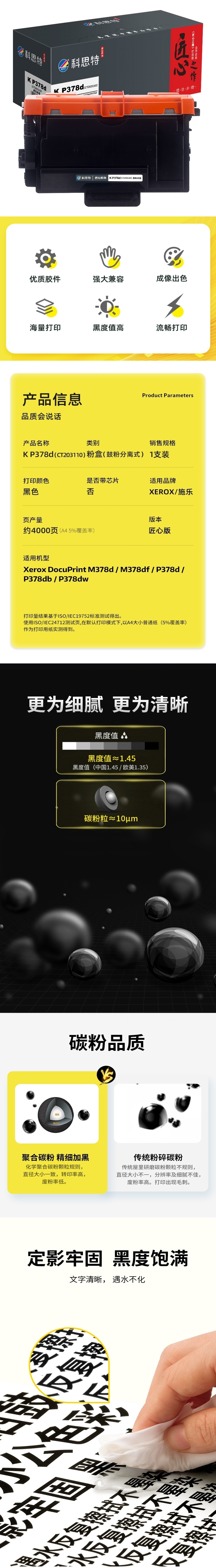 商品标题:科思特(KST)兼容K P378d(CT203110) 匠心版粉盒(鼓粉分离)黑色(适用富士施乐Xerox DocuPrint M378d/M378df/P378d/P378db/P378dw)打印页数:4000页(单位:支)