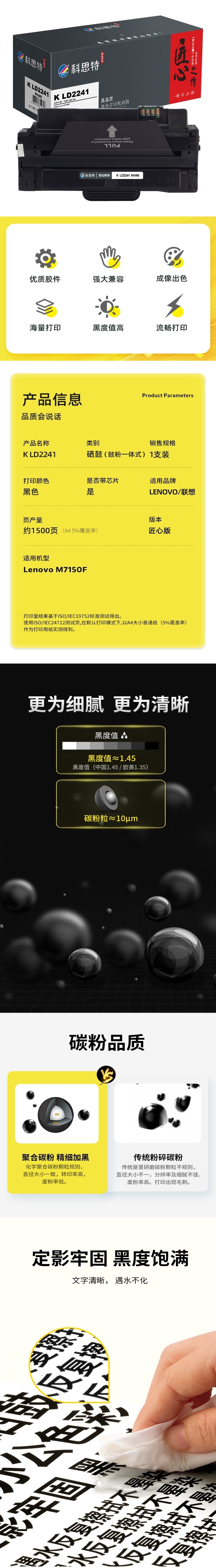 商品标题:科思特(KST)兼容K LD2241 匠心版硒鼓(鼓粉一体)黑色(适用联想Lenovo M7150F)打印页数:1500页(单位:支)