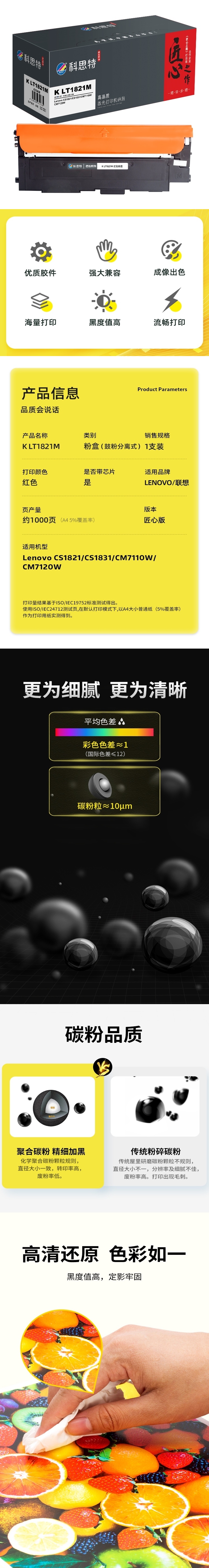 商品标题:科思特(KST)兼容K LT1821M 匠心版粉盒(鼓粉分离)红色(适用联想Lenovo CS1821/CS1831/CM7110W/CM7120W)打印页数:1000页(单位:支)
