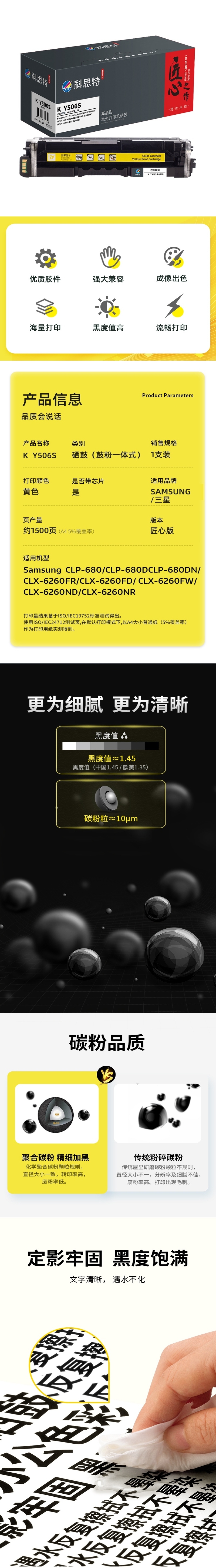 科思特(KST)兼容K Y506S 匠心版硒鼓(鼓粉一体)黄色(适用三星Samsung CLP-680/CLP-680DW/CLP-680DN/CLX-6260FR/CLX-6260FD/CLX-6260FW/CLX-6260ND/CLX-6260NR)打印页数:1500页(单位:支)