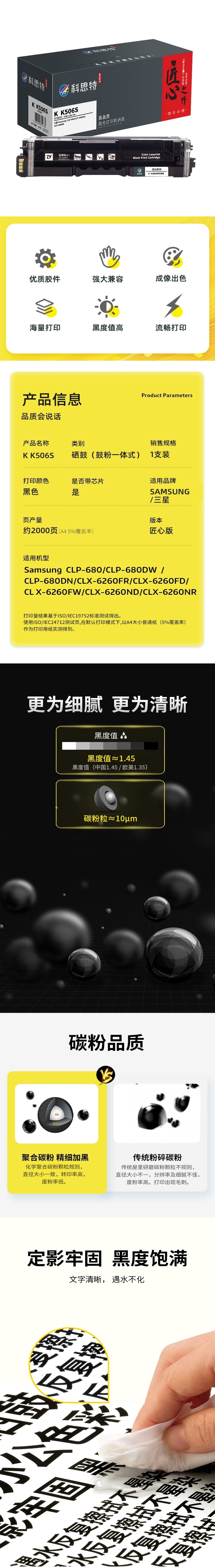 科思特(KST)兼容K K506S 匠心版硒鼓(鼓粉一体)黑色(适用三星Samsung CLP-680/CLP-680DW/CLP-680DN/CLX-6260FR/CLX-6260FD/CLX-6260FW/CLX-6260ND/CLX-6260NR)打印页数:2000页(单位:支)