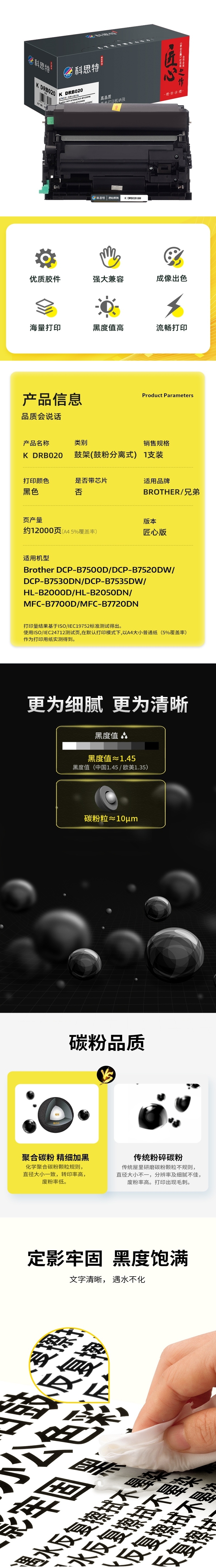 科思特(KST)兼容K DRB020 匠心版鼓架(鼓粉分离)黑色(适用兄弟Brother DCP-B7500D/DCP-B7520DW/DCP-B7530DN/DCP-B7535DW/HL-B2000D/HL-B2050DN/MFC-B7700D/MFC-B7720DN)打印页数:12000页(单位:支)