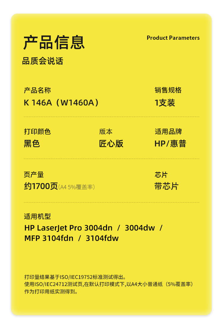 科思特(KST)兼容K 146A(W1460A) 匠心版硒鼓(鼓粉一体)黑色(适用惠普LaserJet Pro 3004dn/3004dw/MFP 3104fdn/3104fdw)打印页数:1700页(单位:支)