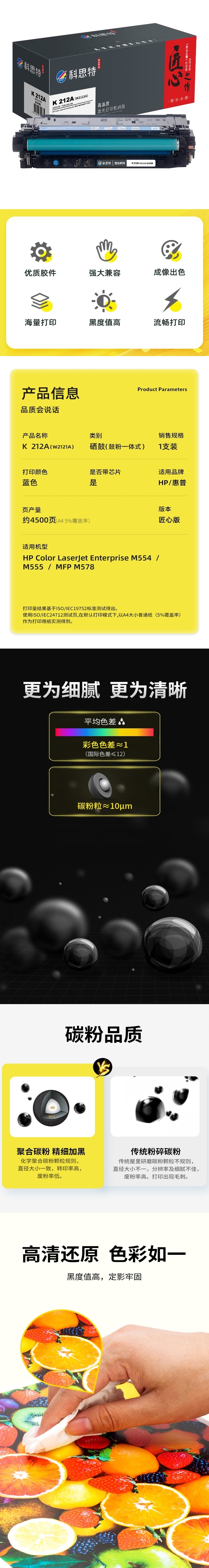 商品标题:科思特(KST)兼容K 212A(W2121A) 匠心版硒鼓(鼓粉一体)蓝色(适用惠普Color LaserJet Enterprise M554/M555/MFP M578)打印页数:4500页(单位:支)