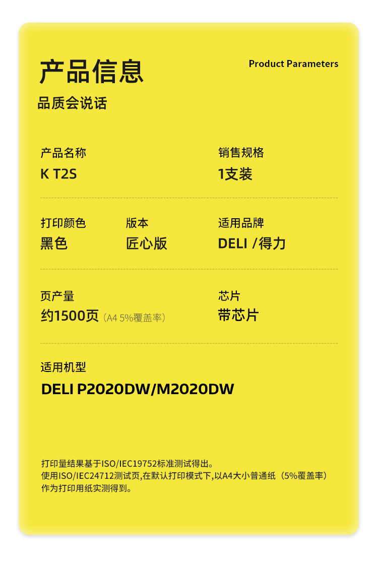 商品标题:科思特(KST)兼容K T2S 匠心版硒鼓(鼓粉一体)黑色(适用得力P2020DW/M2020DW)打印页数:1500页(单位:支)