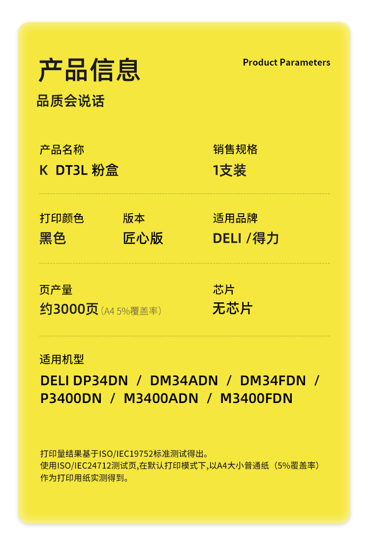 科思特(KST)兼容K DT3L 匠心版粉盒(鼓粉分离)黑色(适用得力DP34DN/DM34ADN/DM34FDN/P3400DN/M3400ADN/M3400FDN)打印页数:3000页(单位:支)