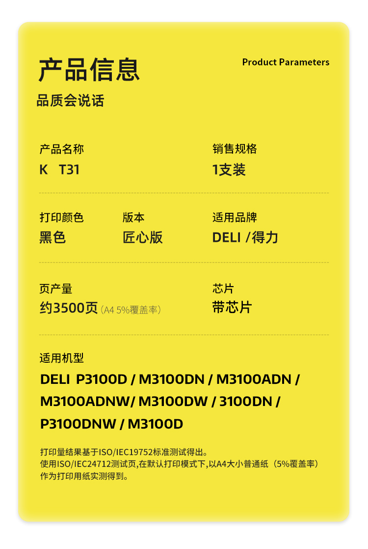 科思特(KST)兼容K T31 匠心版硒鼓(鼓粉一体)黑色(适用得力P3100D/M3100DN/M3100ADN/M3100ADNW/M3100DW/P3100DN/P3100DNW/M3100D)打印页数:3500页(单位:支)