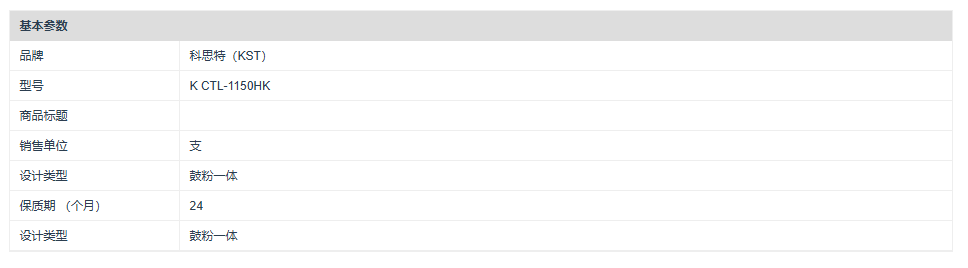 商品标题:科思特(KST)兼容K CTL-1150HK 匠心版硒鼓(鼓粉一体)黑色(适用奔图CP1155DN/CP1150DN/CM1155ADN/CM1150ADN)打印页数:2000页(单位:支)