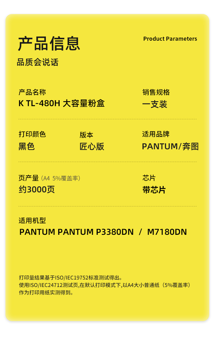 科思特(KST)兼容K TL-480H 匠心版粉盒(鼓粉分离)黑色一支装(适用奔图P3380DN/M7180DN)打印页数:3000页(单位:支)