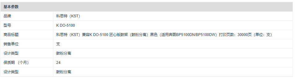 商品标题:科思特(KST)兼容K DO-5100 匠心版鼓架(鼓粉分离)黑色(适用奔图BP5100DN/BP5100DW)打印页数:30000页(单位:支)