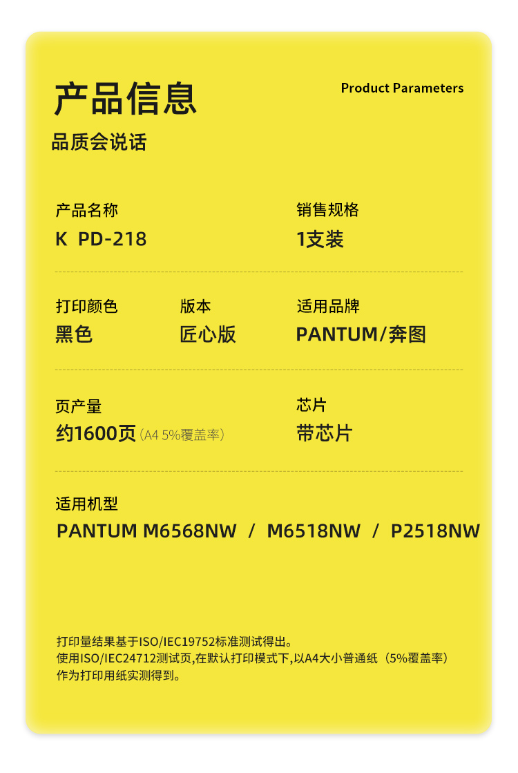 商品标题:科思特(KST)兼容K PD-218 匠心版硒鼓(鼓粉一体)黑色(适用奔图M6568NW/M6518NW/P2518NW)打印页数:1600页(单位:支)