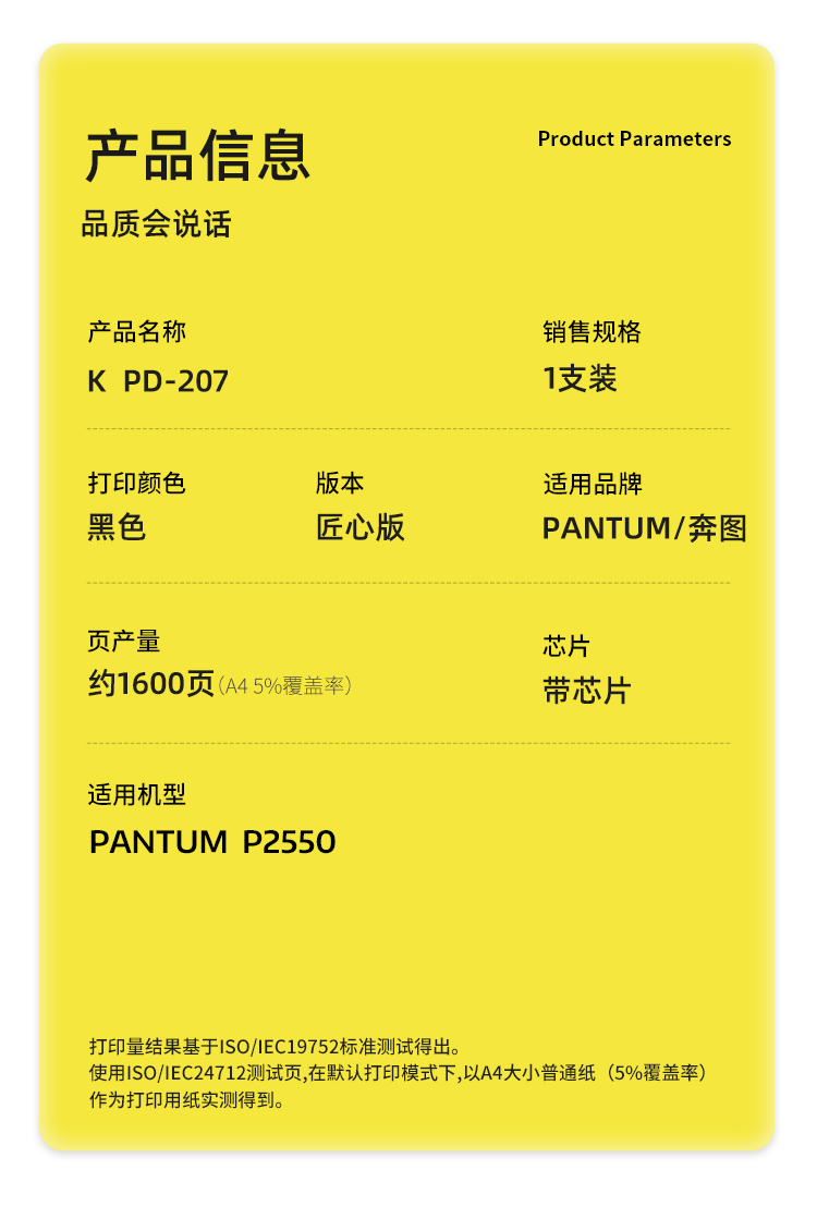商品标题:科思特(KST)兼容K PD-207 匠心版硒鼓(鼓粉一体)黑色(适用奔图P2550)打印页数:1600页(单位:支)