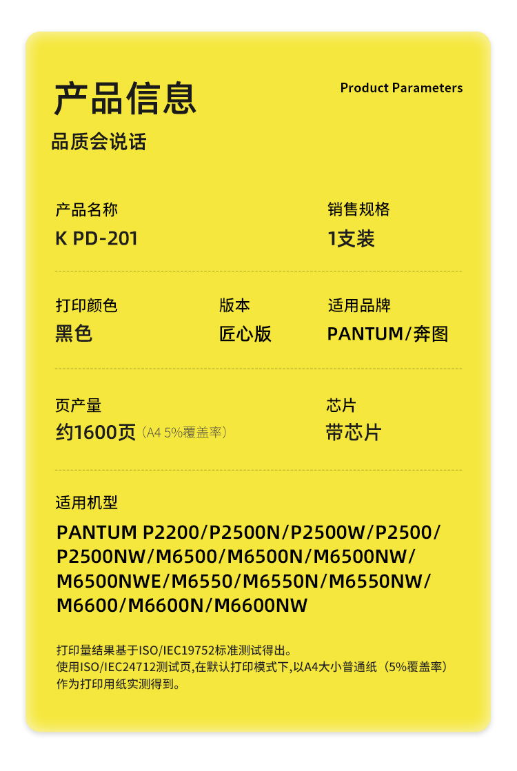 商品标题:科思特(KST)兼容K PD-201 匠心版硒鼓(鼓粉一体)黑色(适用奔图P2200/P2500N/P2500W/P2500/P2500NW/M6500)打印页数:1600页(单位:支)
