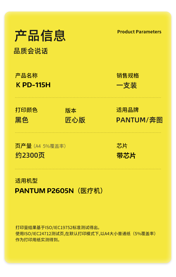 商品标题:科思特(KST)兼容K PD-115H 匠心版硒鼓(鼓粉一体)黑色(适用奔图P2605N(医疗机))打印页数:2300页(单位:支)