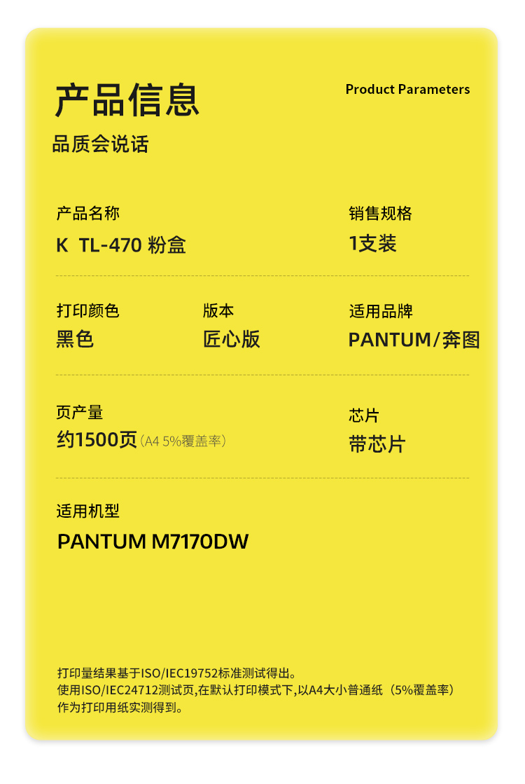 商品标题:科思特(KST)兼容K TL-470 匠心版粉盒(鼓粉分离)黑色(适用奔图M7170DW)打印页数:1500页(单位:支)
