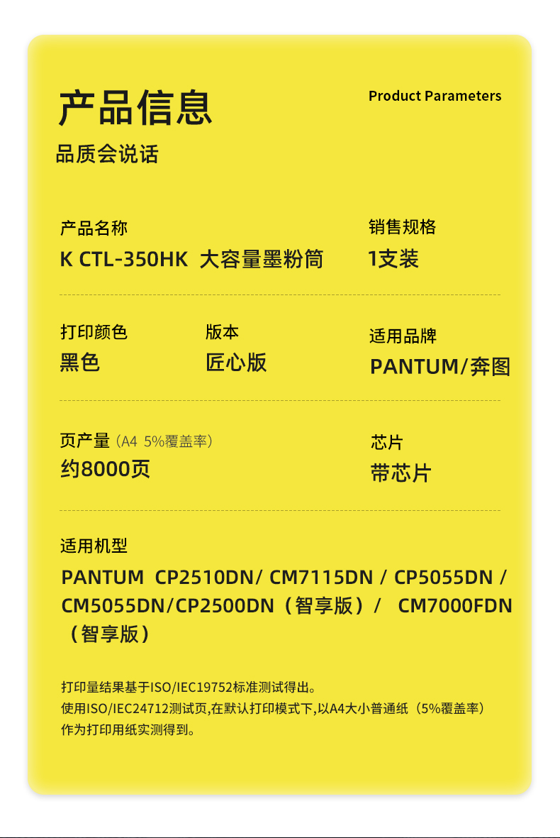 商品标题:科思特(KST)兼容K CTL-300HK 匠心版粉筒(鼓粉分离)黑色(适用奔图CP2506DN PLUS/CM7105DN)打印页数:8000页(单位:支)