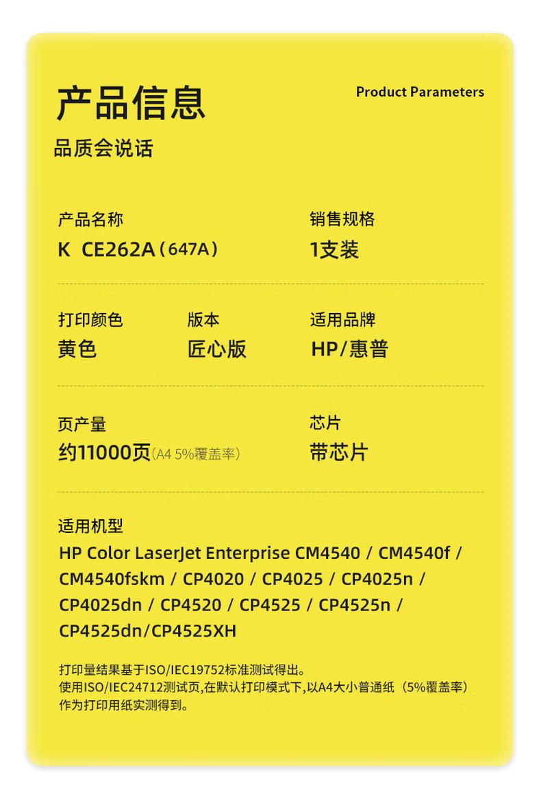 科思特(KST)兼容K CE262A(647A) 匠心版硒鼓(鼓粉一体)黄色(适用惠普Color LaserJet Enterprise CM4540/CM4540f/CM4540fskm/CP4020/CP4025/CP4025n/CP4025dn/CP4520/CP4525/CP4525n/CP4525dn/CP4525XH)打印页数:11000页(单位:支)