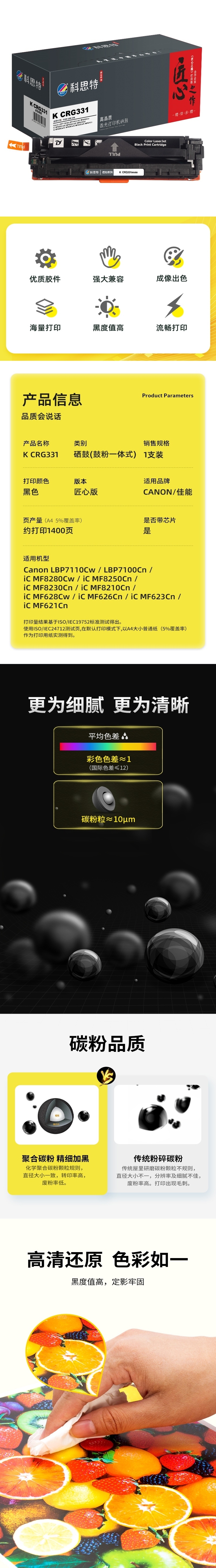 商品标题:科思特(KST)兼容K CRG331 匠心版硒鼓(鼓粉一体)黑色(适用佳能LBP7110Cw/LBP7100Cn/iC MF8280Cw/iC MF8250Cn/iC MF8230Cn)打印页数:1400页(单位:支)