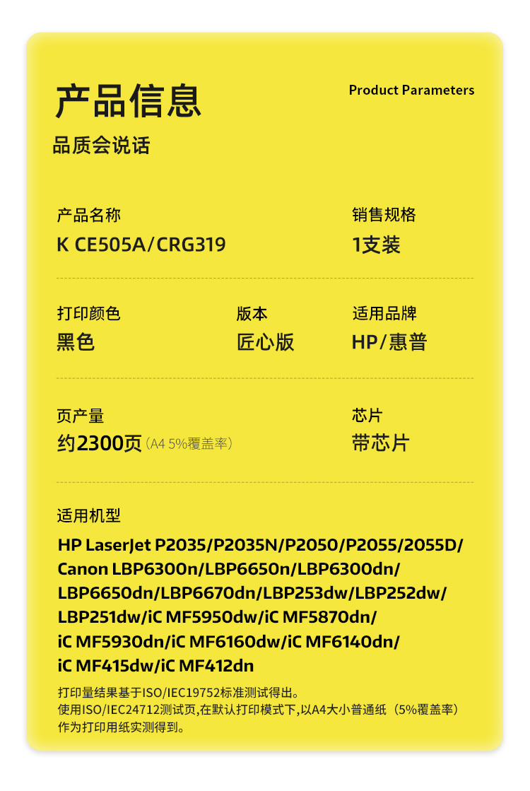 商品标题:科思特(KST)兼容K CE505A/CRG319 匠心版硒鼓(鼓粉一体)黑色(适用惠普400/M401dn/佳能6650n/6650dn/414dw)打印页数:2300页(单位:支)