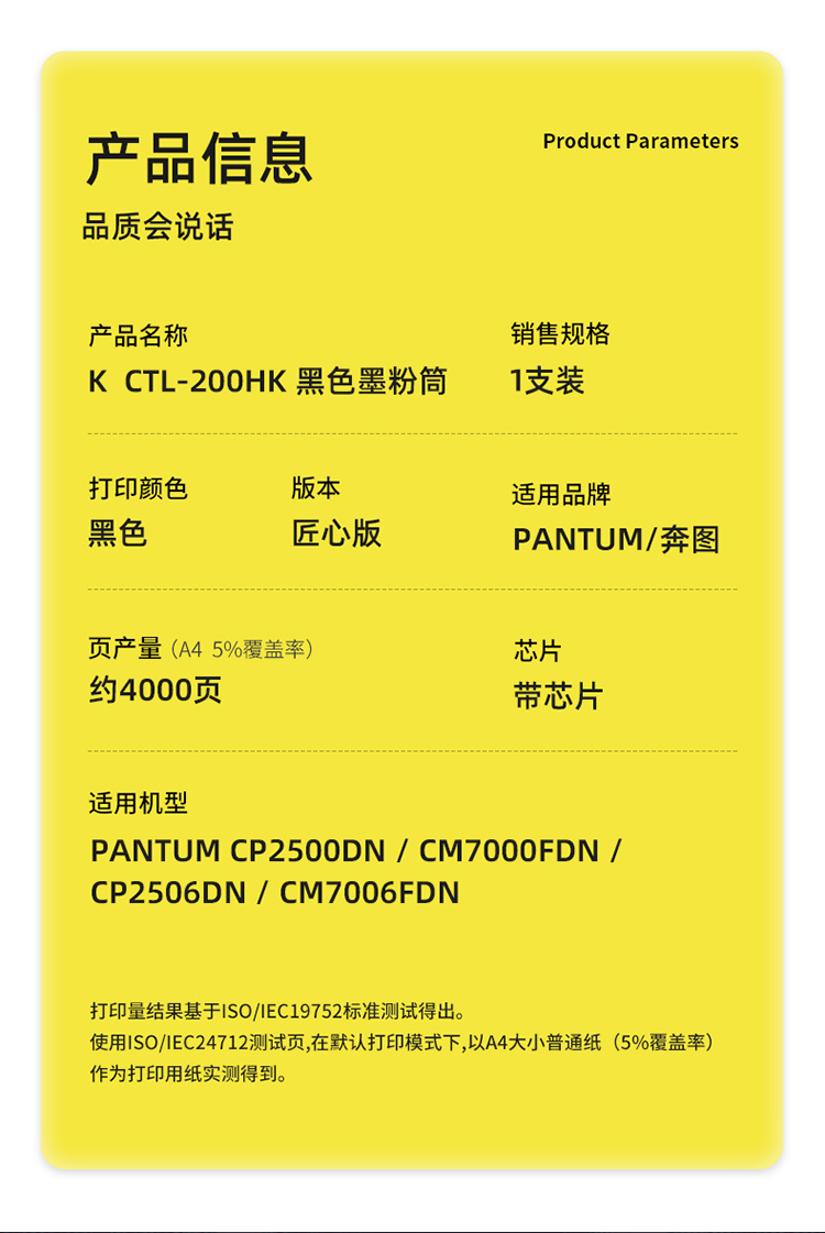 商品标题:科思特(KST)兼容K CTL-200HK 匠心版粉筒(鼓粉分离)黑色(适用奔图CP2506DN/CM7006FDN)打印页数:4000页(单位:支)