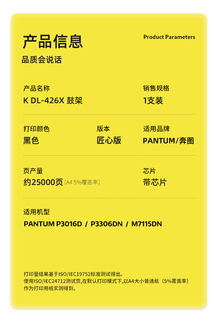 商品标题:科思特(KST)兼容K DL-426X 匠心版鼓架(鼓粉分离)黑色(适用奔图P3016D/P3306DN/M7115DN)打印页数:25000页(单位:支)
