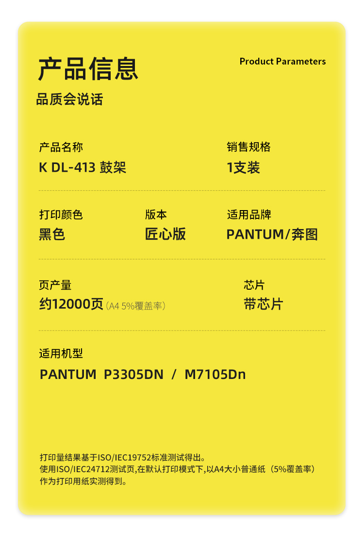 科思特(KST)兼容K DL-413 匠心版鼓架(鼓粉分离)黑色(适用奔图P3305DN/M7105Dn)打印页数:12000页(单位:支)
