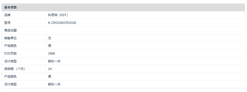 商品标题:科思特(KST)兼容K CRG328/CRG326 匠心版硒鼓(鼓粉一体)黑色(适用佳能 iC D520/iC MF4420w/FAX-L150)打印页数:2000页(单位:支)