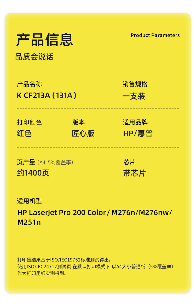商品标题:科思特(KST)兼容K CF213A(131A)匠心版硒鼓(鼓粉一体)红色(适用惠普267M/251n/hp131A)打印页数:1400页(单位:支)