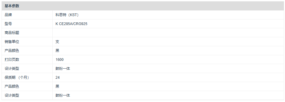 商品标题:科思特(KST)兼容K CE285A/CRG925 匠心版硒鼓(鼓粉一体)黑色(适用惠普M1132/M1212/佳能LBP 6018/MF3010)打印页数:1600页(单位:支)