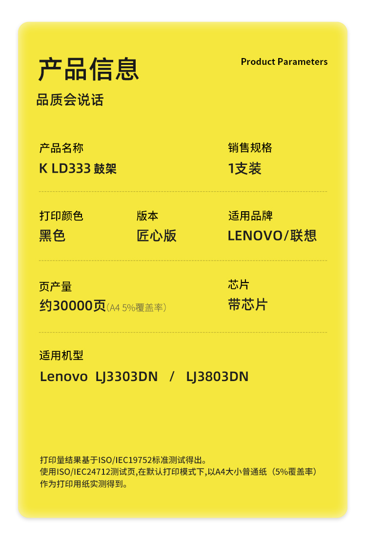 商品标题:科思特(KST)兼容K LD333 匠心版鼓架(鼓粉分离)黑色(适用联想LJ3303DN/LJ3803DN)打印页数:30000页(单位:支)