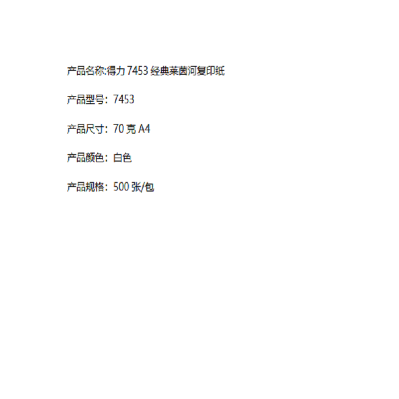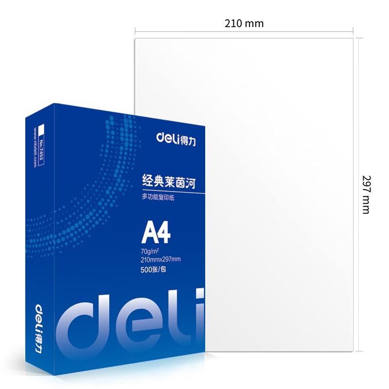 商品标题:得力7453经典莱茵河复印纸 70克A4 500张/包 5包/箱(包)