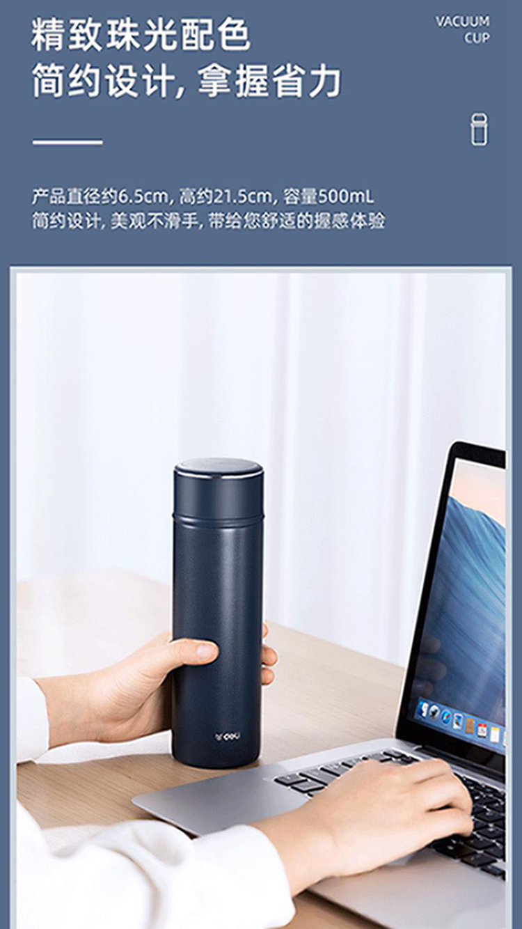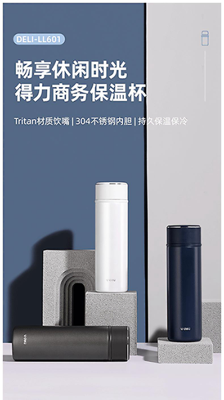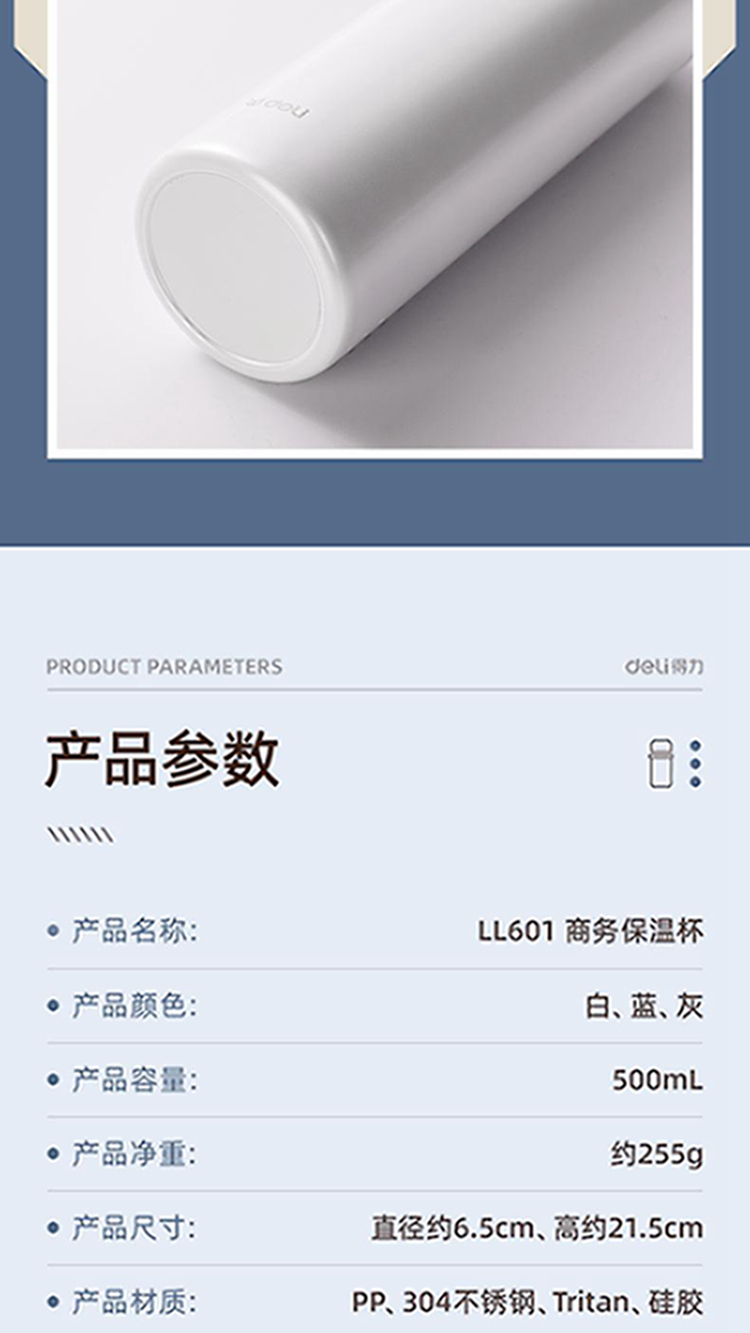 商品标题:得力LL601-BGY商务保温杯(500ml)(灰)(个)