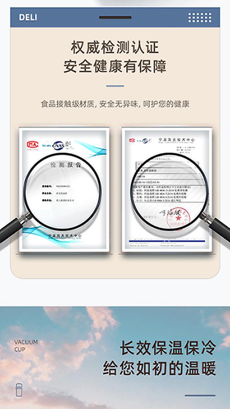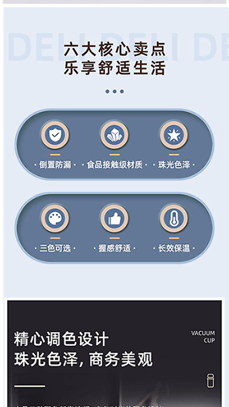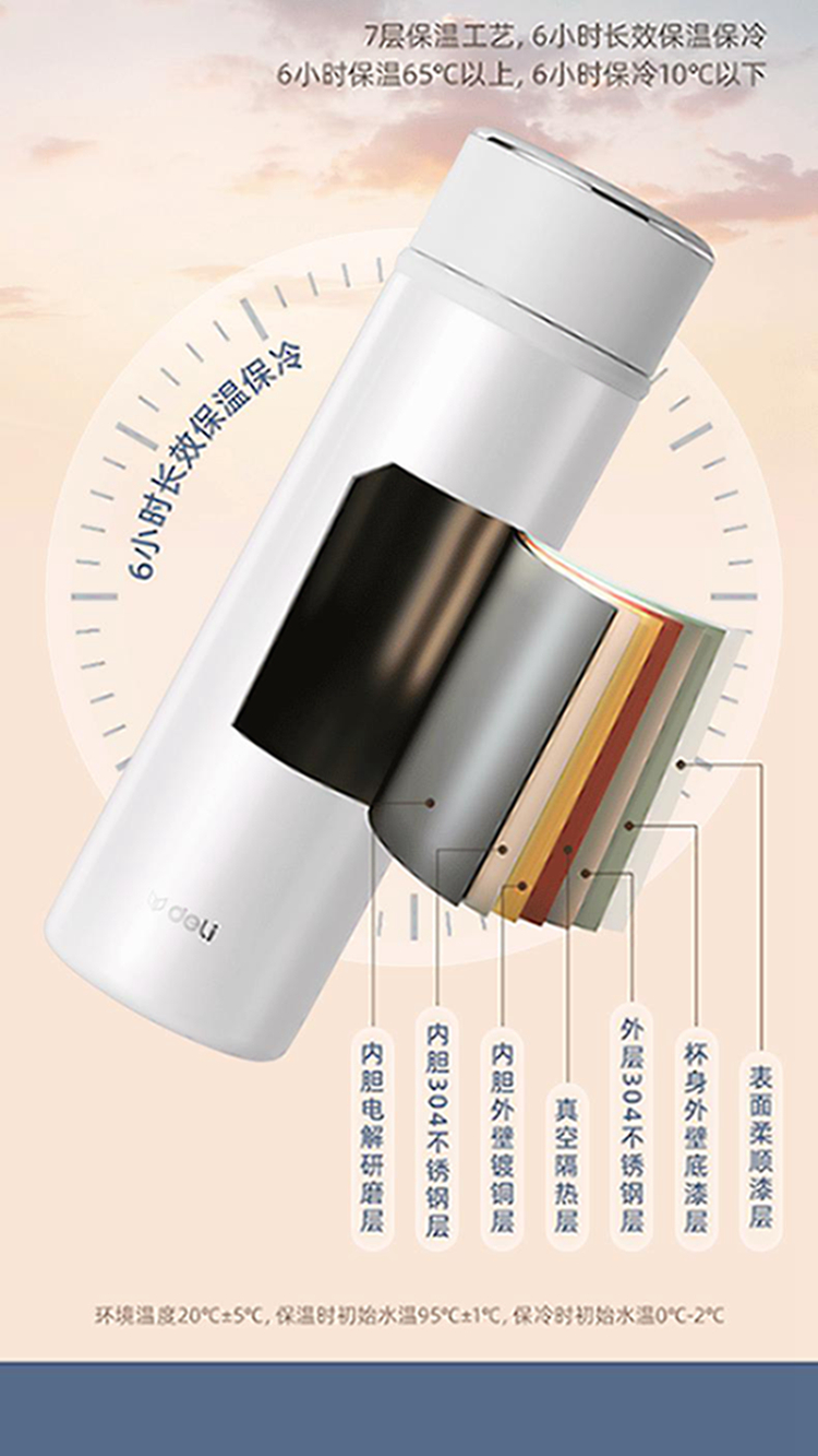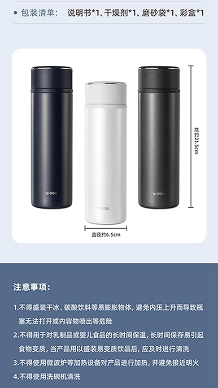 商品标题:得力LL601-BGY商务保温杯(500ml)(灰)(个)