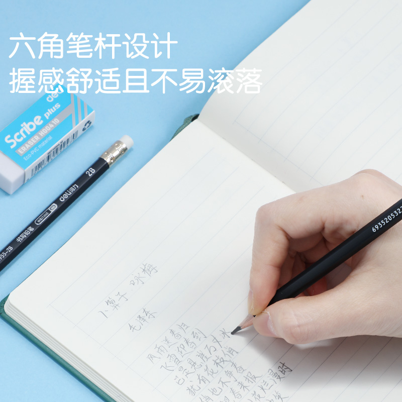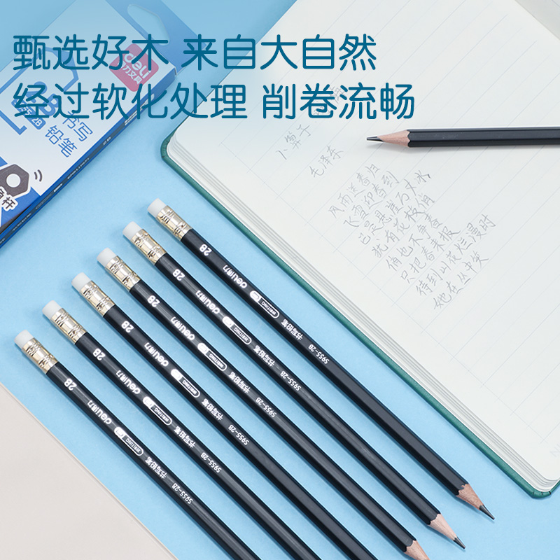 商品标题:得力S955-2B_黑杆办公皮头2B铅笔(黑)(12支/盒)