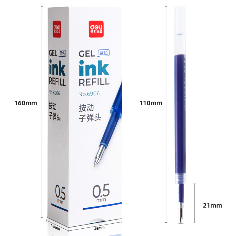 得力6906按动中性笔替芯0.5mm子弹头(蓝色)(单位:支)