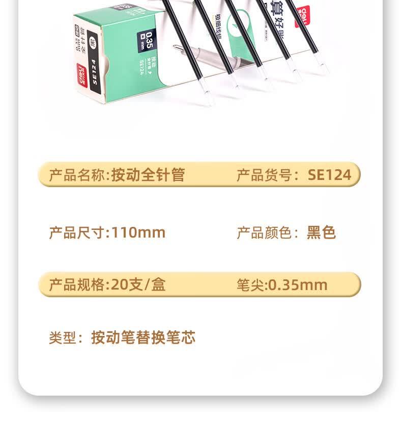 商品标题:得力SE124财务专用中性笔替芯0.35mm速干按动全针管(黑)(支)