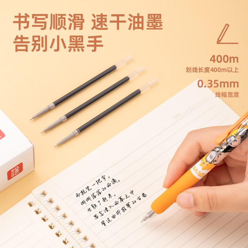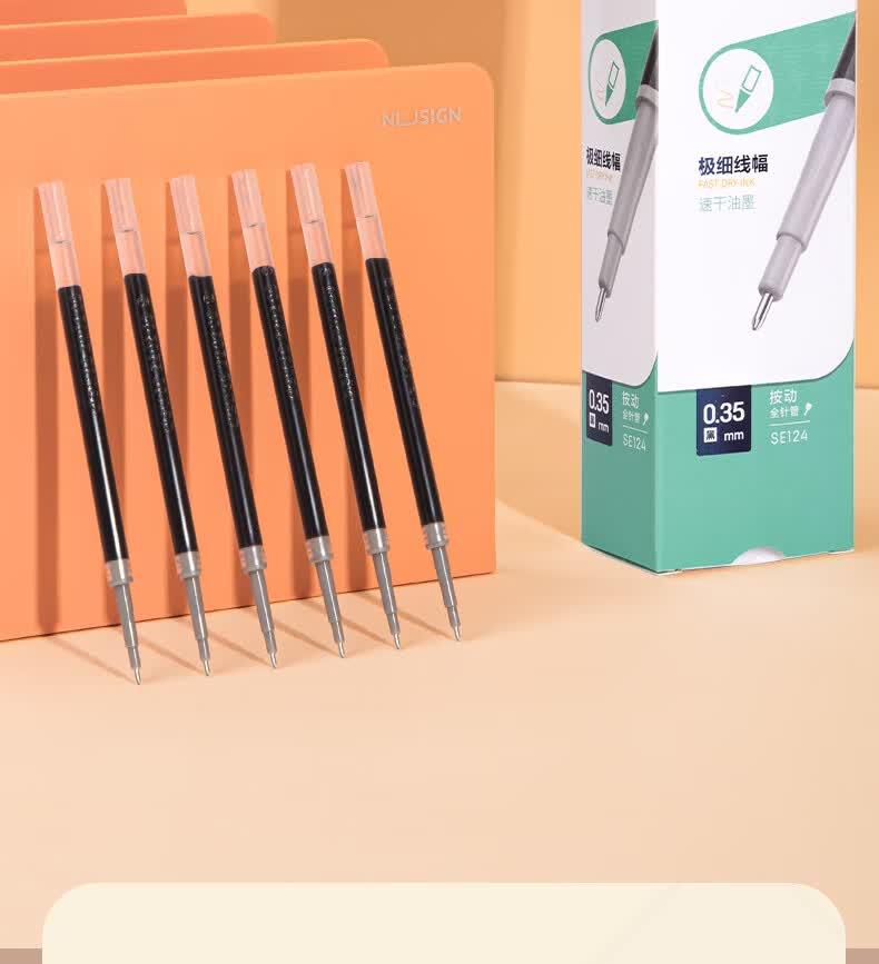 得力SE124财务专用中性笔替芯0.35mm速干按动全针管(黑)(支)