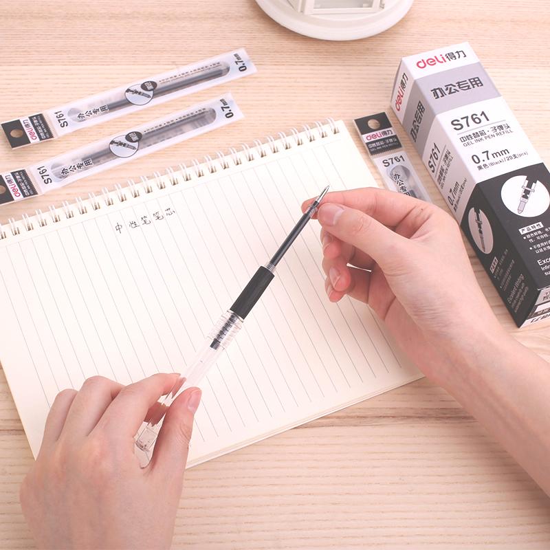 得力(DELI)S761 0.7mm子弹头中性笔芯 20支/盒 黑(单位:支)