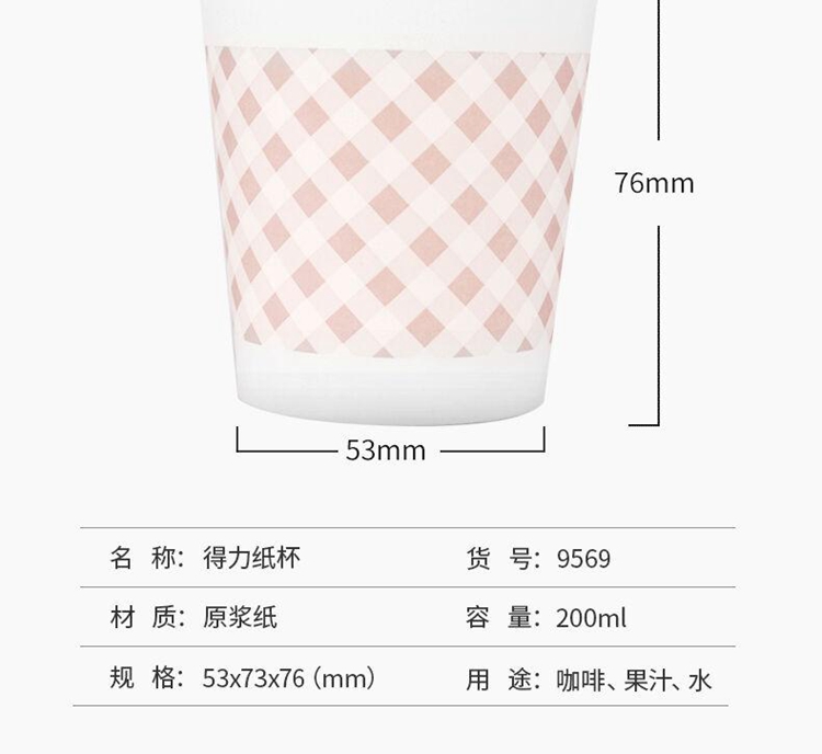 得力9569纸杯240g太阳纸+18gPE膜50只/包 200ml 白(单位:包)