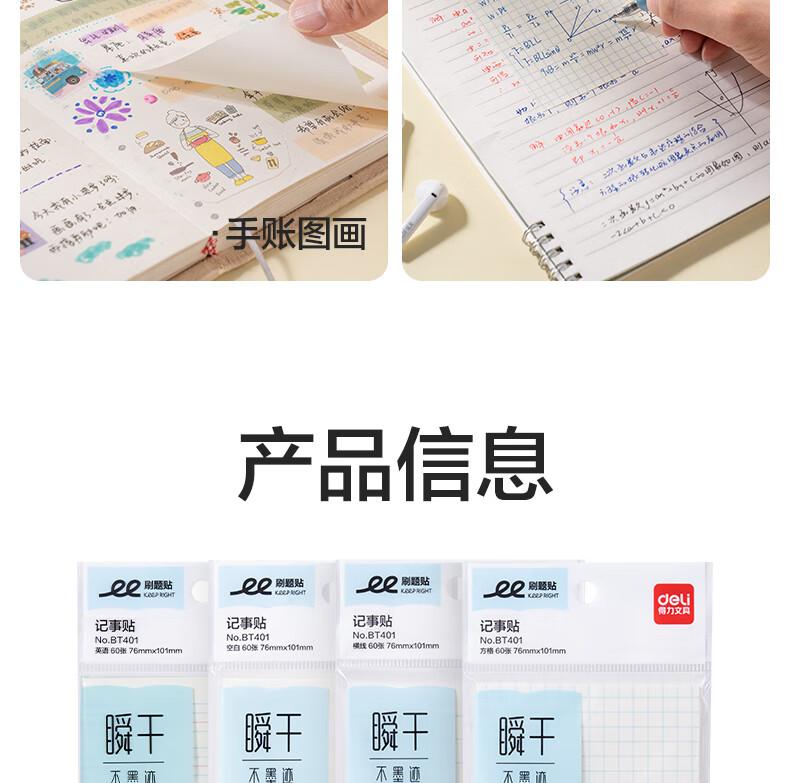 得力BT401刷题记事贴 76mm*101mm-60张 (横线)(袋)