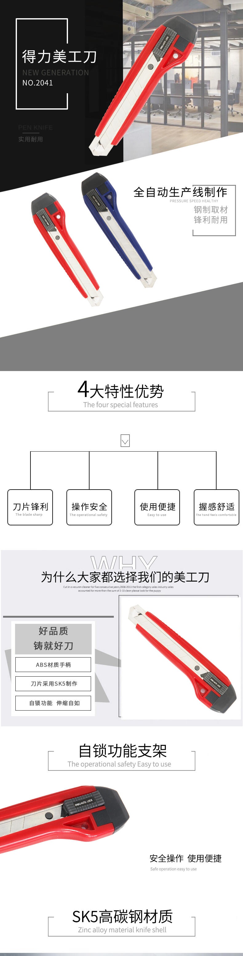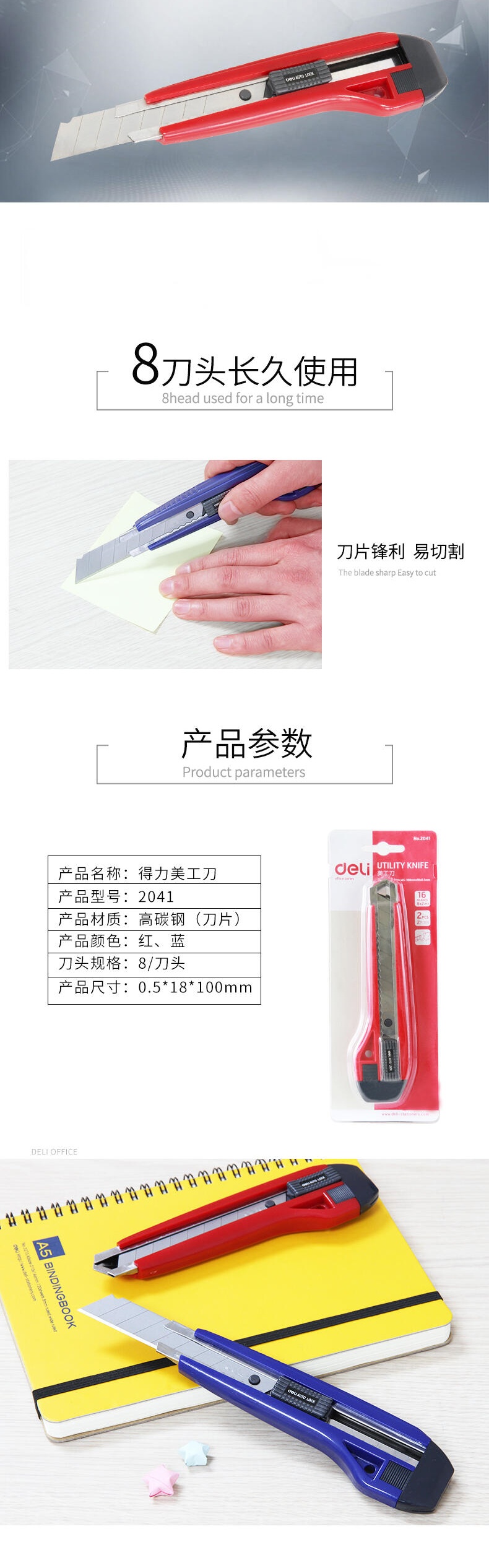 商品标题:得力美工刀2041(蓝色)(把)