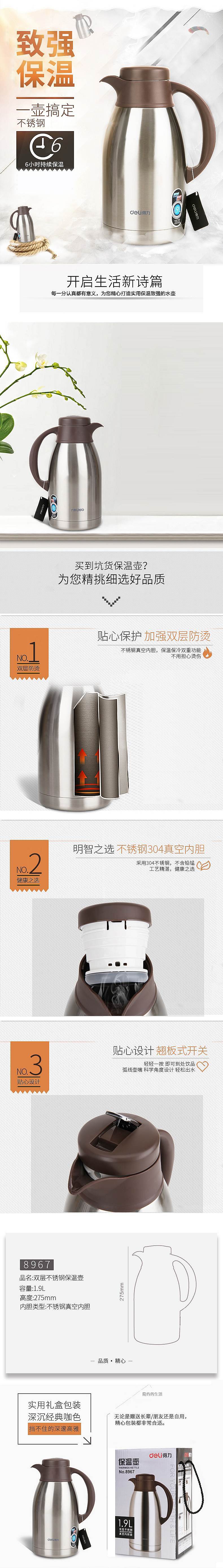 商品标题:得力8967保温壶1.9L(本色)(个)