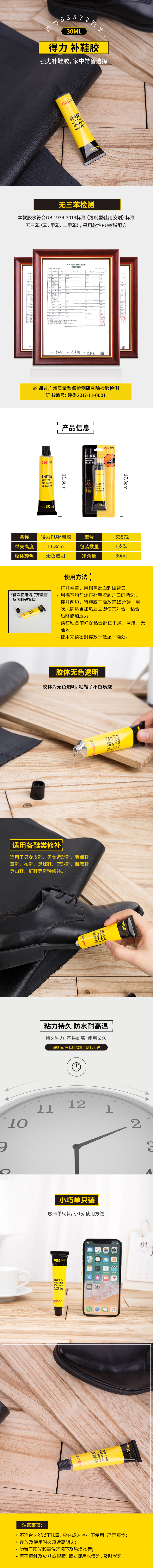 商品标题:得力(deli)53572-补鞋胶(单位:卡)黄