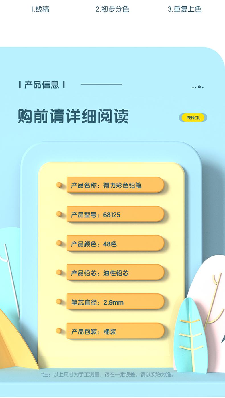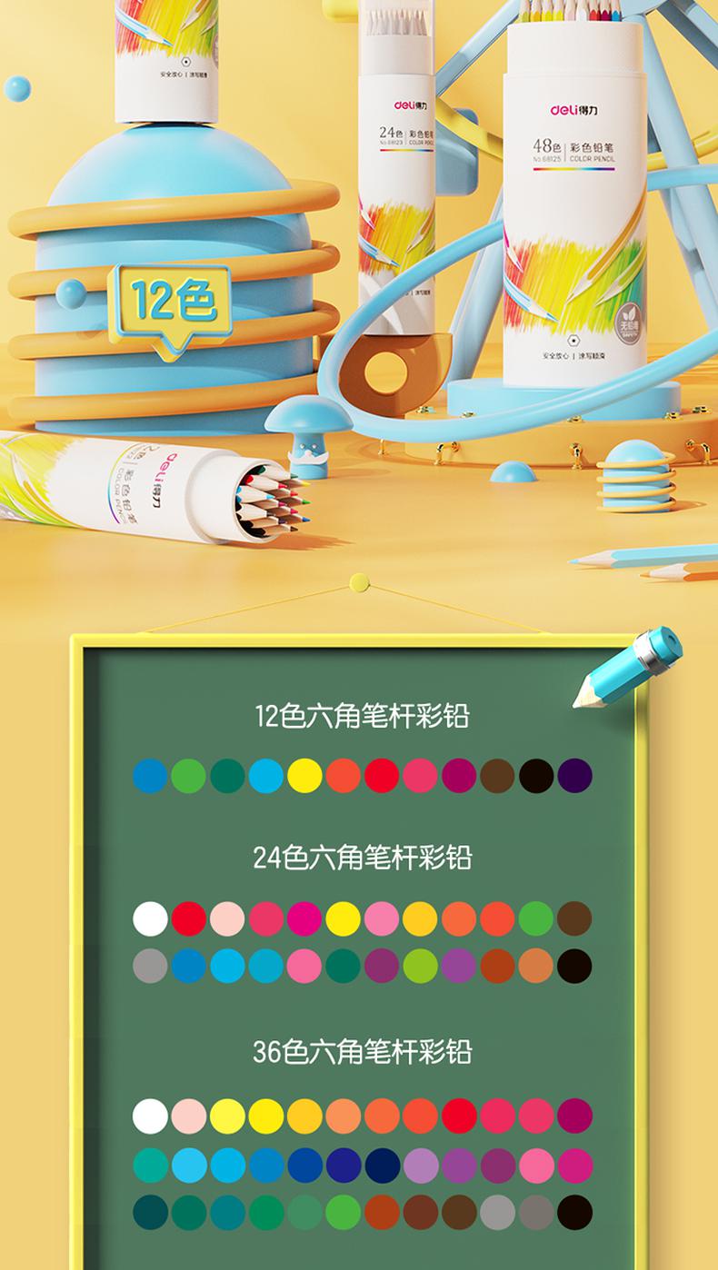 商品标题:得力(deli)68125_48色六角杆彩铅48色/筒(单位:筒)混