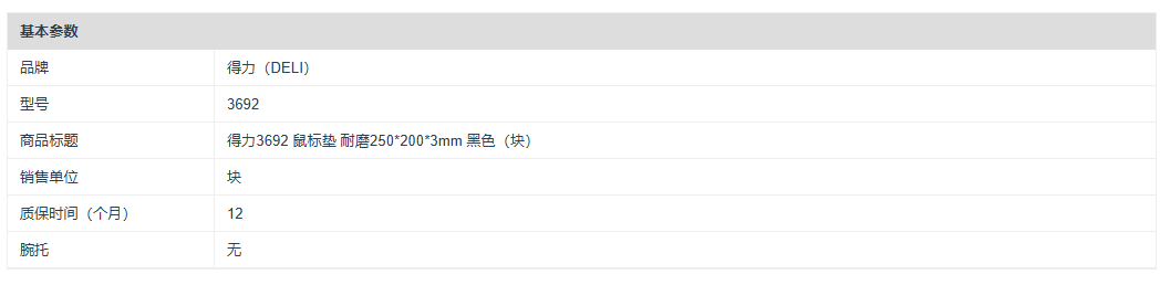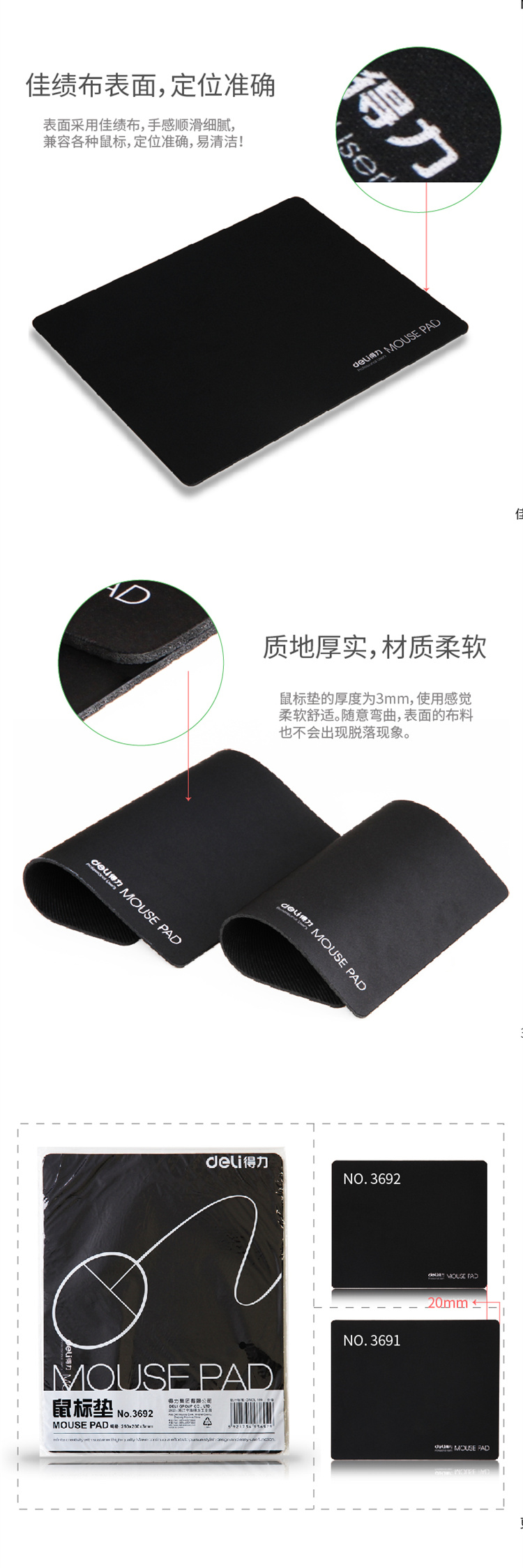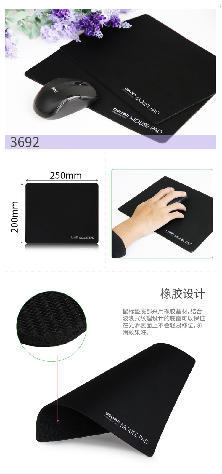 得力(DELI)3692 鼠标垫 耐磨250*200*3mm 黑色(块)