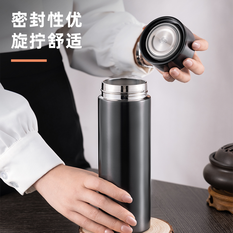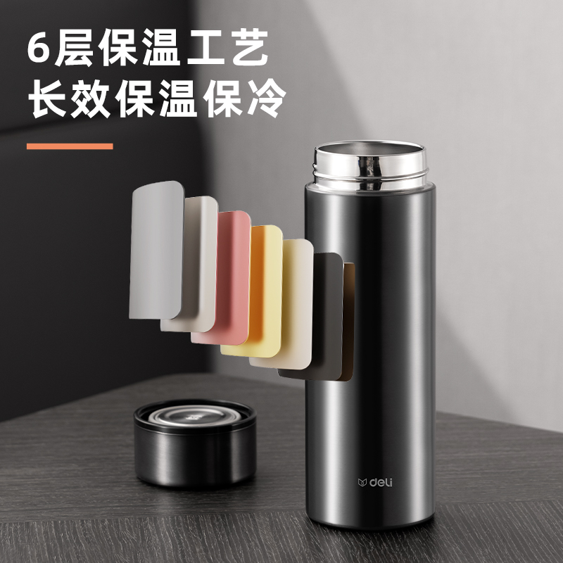 得力LL615商务保温杯(旋盖)(500mL)(304内胆)(银)(彩盒装)