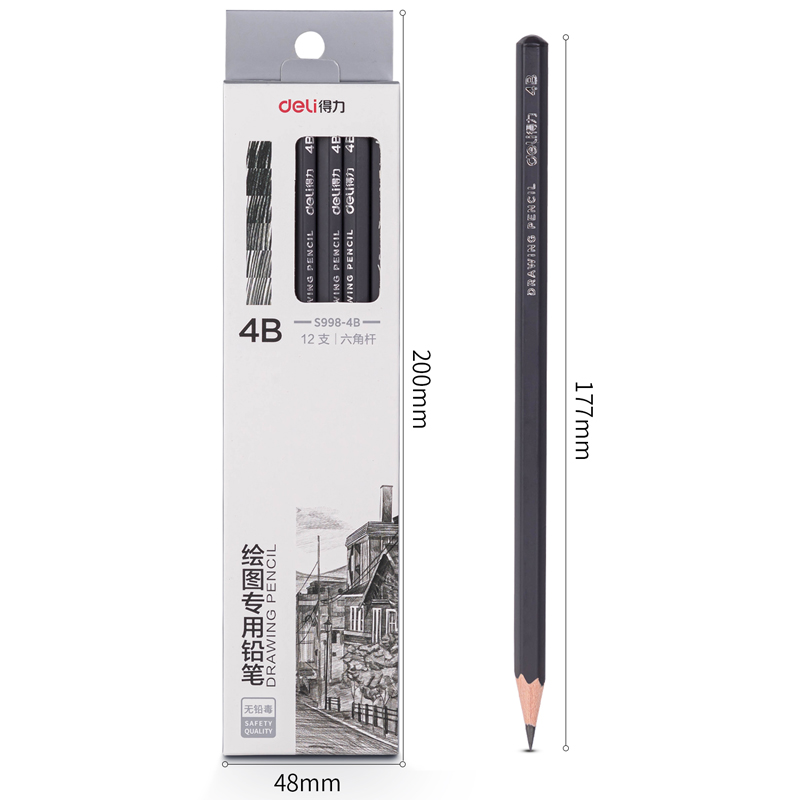商品标题:得力S998-4B绘图专用铅笔(混)(12支/盒)