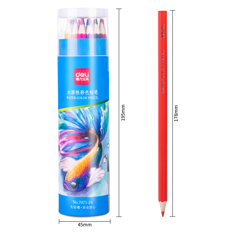 得力7071-24_24色六角杆水溶性彩铅(混)(24色/筒)